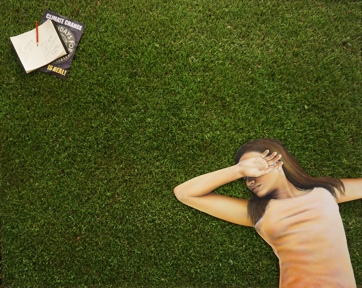 Öl auf Karton, Kunstrasen, Papier