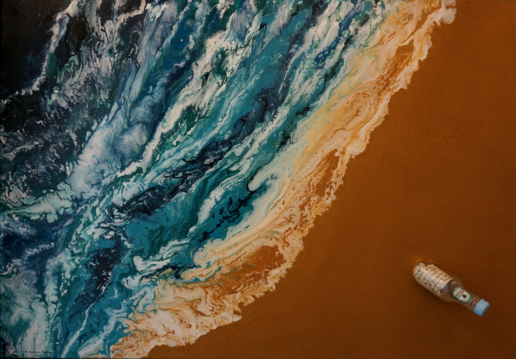 Acryl auf Leinwand, Sand, Plastikflasche, Papier